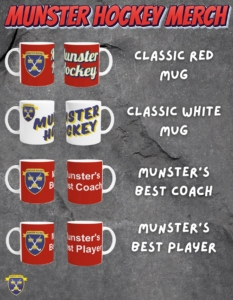 We are delighted to announce that Munster Hockey supporters gear is now available across two suppliers. The range is split across two shops with our GoSport shop offering some great branded clothing for both supporters and players. Our Etsy shop offers hats and cups. All products are made to order by our producers.